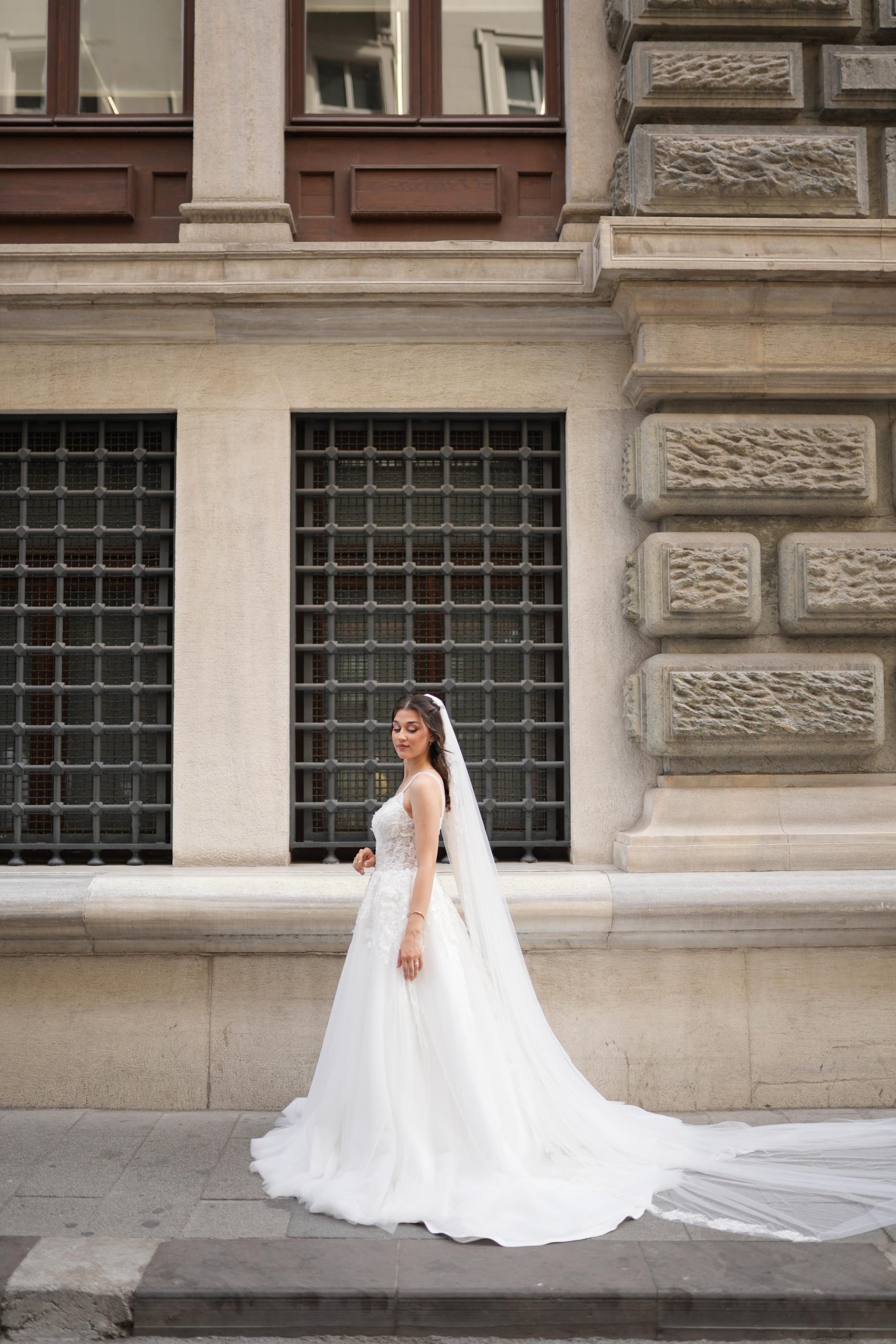 En özel gününüzde hem zarif hem de özgür hissedin. İnce askılı tasarımı ve bedeni saran dantel işlemeli üst yapısıyla modern bir duruş sergileyen bu model, belden aşağıya doğru genişleyen yumuşak tül eteğiyle masalsı bir görünüm sunuyor. Derin V yaka detayı ve hafif kuyruğu ile hem dış çekimlerde hem de düğün anında büyüleyici bir silüet yaratıyor. Hafif yapısı sayesinde gece boyu dans etmenin tadını çıkarın.